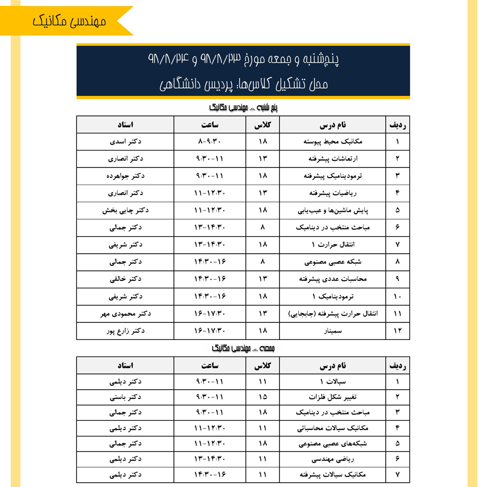 دانلود فایل زمان بندی کلاس های رشته مهندسی مکانیک