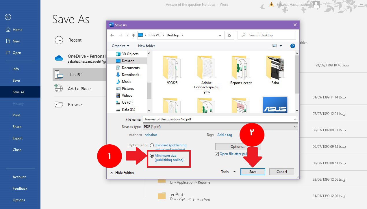 برای ایجاد یک فایل pdf با حجم کم به صورت زیر عمل نمایید.