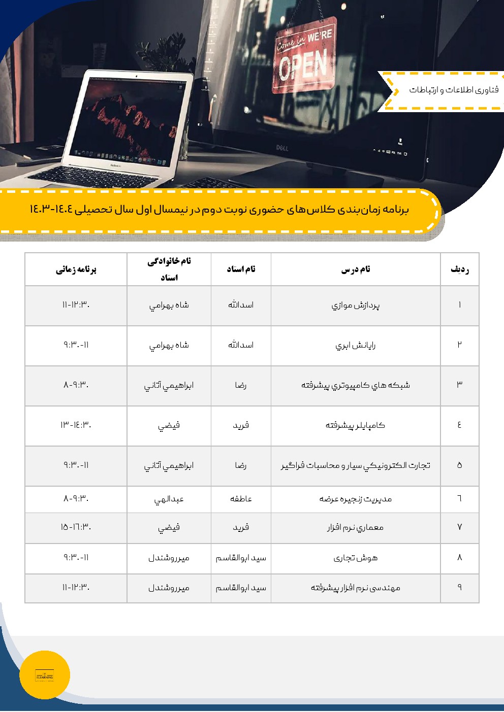 برگزاری جلسات حضوری دوره های مجازی در نیمسال اول سال تحصیلی 1404-1403
